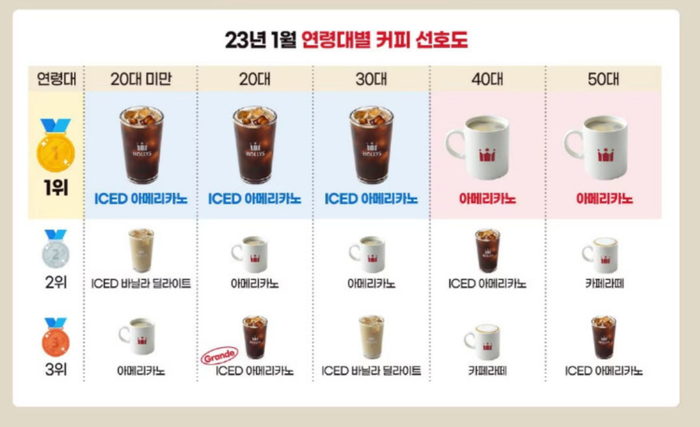 〓 韩国咖啡品牌的统计数据显示:年轻人中冰美式牢牢占据第一位置