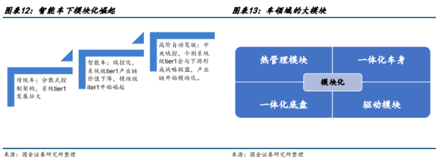 供应商方面,分析师表示,随着整车从分散式控制架构迭代到集中域控阶段,自动驾驶就将从原来的分散式架构tier1手中回收控制权。系统级 tier1 逐步走进历史,未来 tier1 将是大模块供应商。目前车领域的大模块包括:车身、底盘、热管理、驱动集成等。