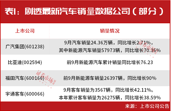 此外,广汽集团、比亚迪、福田汽车等也最新剧透了9月或年内汽车的产销增长数据(见表1)。