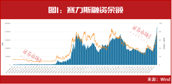 另据进一步观察,不少个股获得了融资盘的长期持续增持,并且最新的融资余额(融资买入后未偿还的金额,融资余额若增加,表示投资者心态偏向买方)已经创下历史新高,如上述提到的赛力斯,8月底以来,融资盘即开启了对其“买买买”模式,截至目前,融资余额达近37亿元,创出历史高位(见图1)。