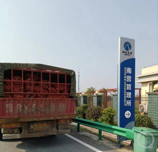 ↑大货车所运货物接受湖北交投南营管理所查验。图据上游新闻
