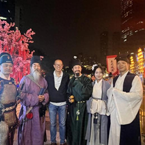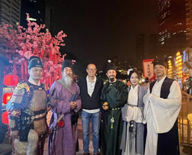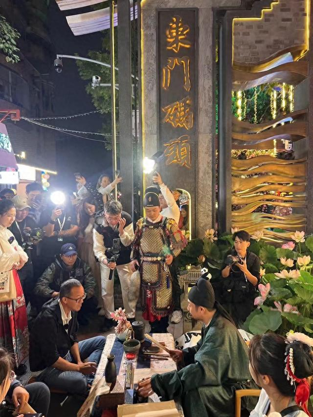 俞敏洪和两位讲解员一起,与沿街叫卖的货郎互动,与挥毫泼墨的“李白”共吟,听鸣锣小厮气势如虹的“开船”仪式,乘船途中还一睹木偶变脸的精彩绝技,合江亭畔与“杜甫”吟诗送别,安顺廊桥处与“江上吹笛人”以曲会友……一处处靓丽的人文风景,正是锦江不夜天的绝美表达。
