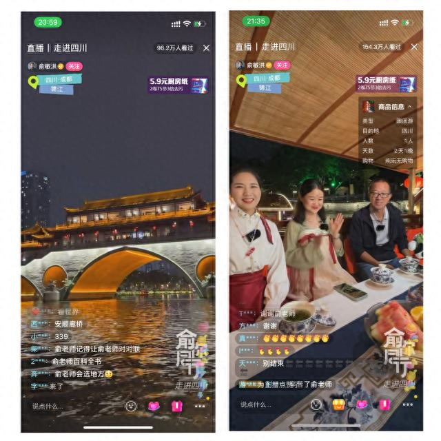 “金牌导游”俞敏洪来蓉直播,超154.3W网友云游成都、夜游锦江