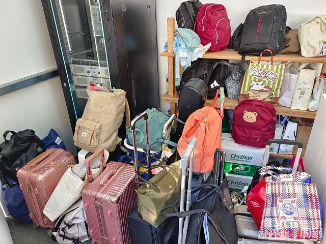 现场寄存的拉杆箱和背包