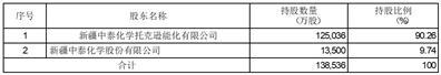 本次增资完成后,中泰新材料注册资本由22,500万元变更为138,536万元,股权结构如下: