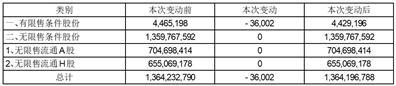 3、本次回购注销完成后,公司股份总数将由1,364,232,790股变更为1,364,196,788股,公司注册资本将相应由1,364,232,790元减少为1,364,196,788元。本次回购注销部分A股限制性股票将不影响本激励计划的实施。