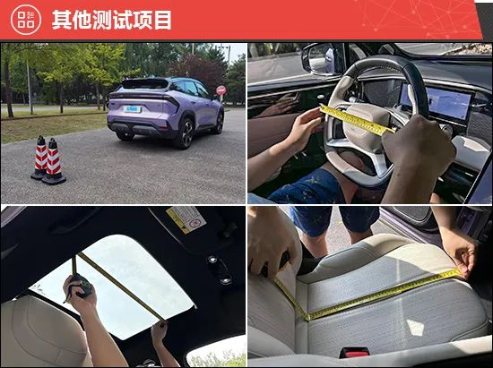 此外,我们还针对驻车雷达、灯光/视野、操控系统、轮胎、天窗、座椅、后备厢进行了测试。经过测试发现,2023款吉利银河L7的前排座椅座垫较长,可以对腿部提供充分承托。不过倒车雷达持续蜂鸣最近端的距离与测试经验值相差较大,进行泊车时略有不便。