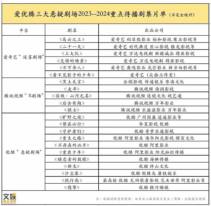 所以我们看到,在这场持续的“流动”背后涌现了一段段双向成长的故事。优爱腾通过扩大选择不断自证了内容精品化能力,有效加固了平台的大众认知和品牌价值;公司们也借助拥抱更多平台与探索悬疑之外的更广阔题材,撬开了自身的诸多成长可能。