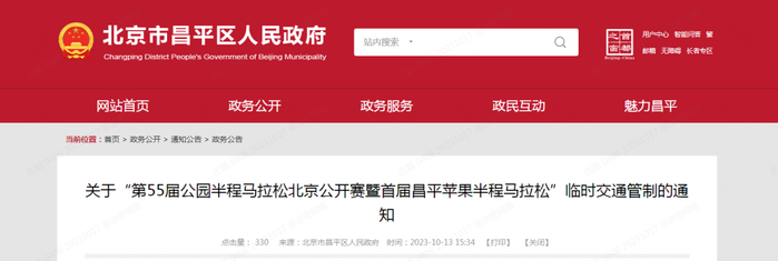 10月21日,第55届公园半程马拉松北京公开赛暨首届昌平苹果半程马拉松即将开跑,部分路段采取临时交通管制,7条公交线路采取临时调整。