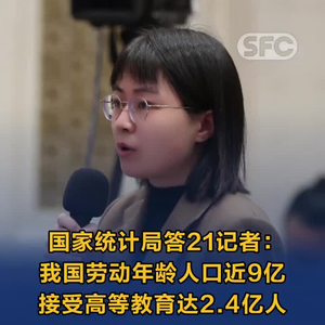 国家统计局就人口形势答21记者:我国劳动年龄人口近9亿,接受高等教育达2.4亿人