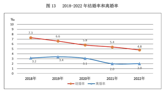 10月13日,民政部发布《2022 年民政事业发展统计公报》。统计公报显示,2022 年,全国婚姻登记机构和场所共计4310 个,其中婚姻登记机构 1103 个,全年依法办理结婚登记683.5万对,比上年下降10.6%。结婚率为4.8‰,比上年下降0.6 个千分点。
