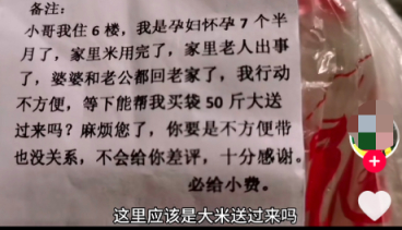 “外卖小哥,我是一名怀孕7个月的孕妇,老公出差了,能帮我带一袋50斤的大米吗……我住六楼老小区,没有电梯……”接到了这样的订单备注,外卖骑手会怎么办?