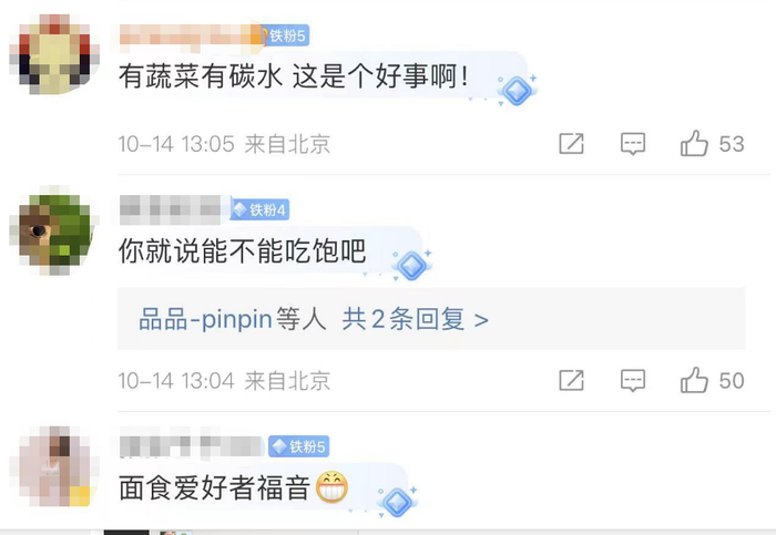 也有网友调侃:“有蔬菜有碳水,你就说能不能吃饱吧”“面食爱好者的福音”。