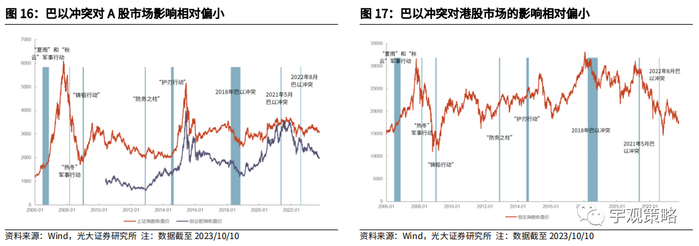 光大证券指出,从历史数据来看,巴以冲突对国内A股和港股市场影响相对偏小。相比较之下,对港股的影响略大于A股。