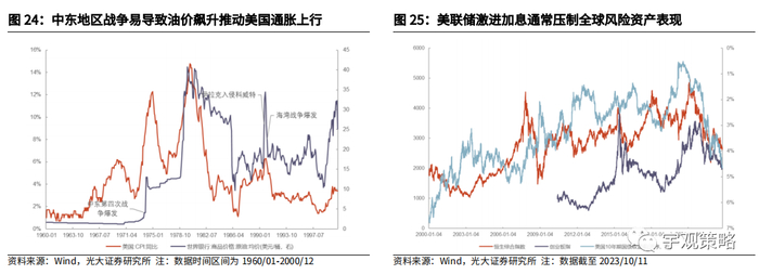 10月18日讯(编辑 胡家荣)近日巴以冲突持续引发市场关注,对此光大证券指出,这一轮冲突存在一定的外溢风险。其中短期内受市场避险情绪上升影响,以原油、黄金为代表的大宗商品短期内出现上涨。此外,他们指出,港股受冲突影响略大于A股市场。