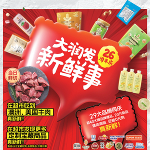10月11日,全国综合性大型超市大润发迎来了26周年庆,超40支品牌爆品、20支新品集体亮相,更有多款定制宝藏商品独家发售,为市民带来更加新鲜、更具质价比的购物体验。