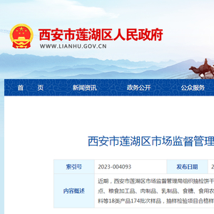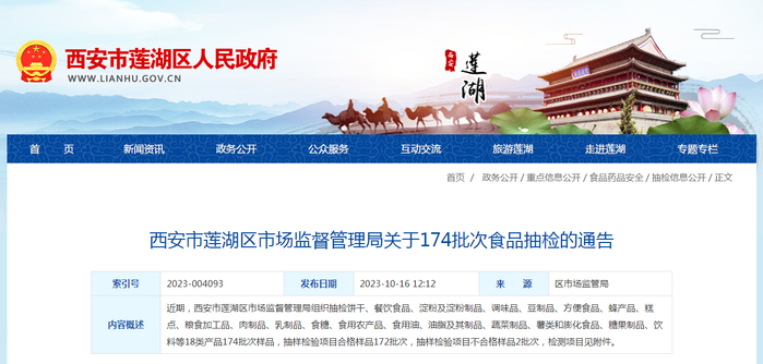 西安市莲湖区市场监管局关于174批次食品抽检的通告