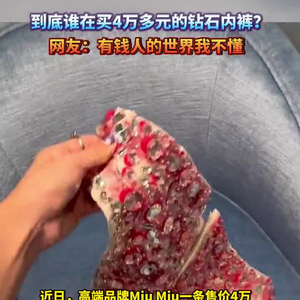 【到底谁在买4万多元的钻石内裤?网友:有钱人的世界我不懂】#MiuMiu钻石内裤#近日,高端品牌MiuMiu一条售价4万多元的钻石内裤引发大量热议。该产品堪称今年秋冬首个火爆全网的传奇单品,更是让网友直呼:“有钱人的世界我不懂”。MiuMiu店员表示:“买的人不多,因为还蛮挑人的,很多顾客觉得很好看,但不知道怎么穿,其实下面配个丝袜就很好了。”据悉,该款内裤的材质并不是钻石,而是真丝+水晶。有网友称这条内裤的穿着场景是不下水游泳时的比基尼,只是用来摆拍的。对此,你怎么看?#4万多的钻石内裤在上海也卖不动#
