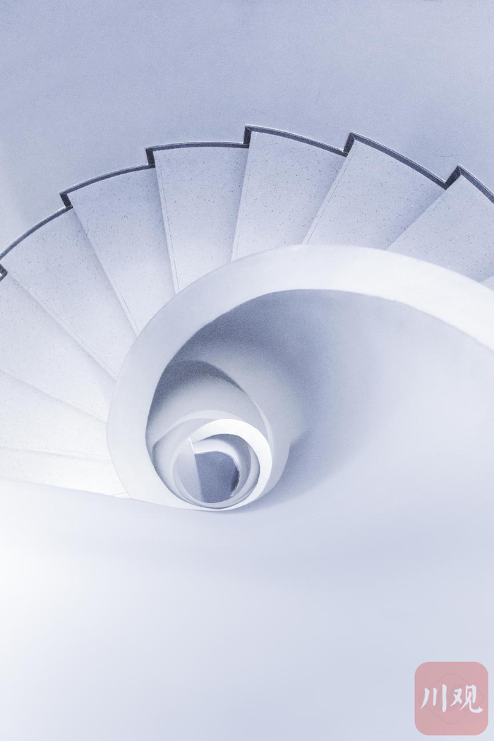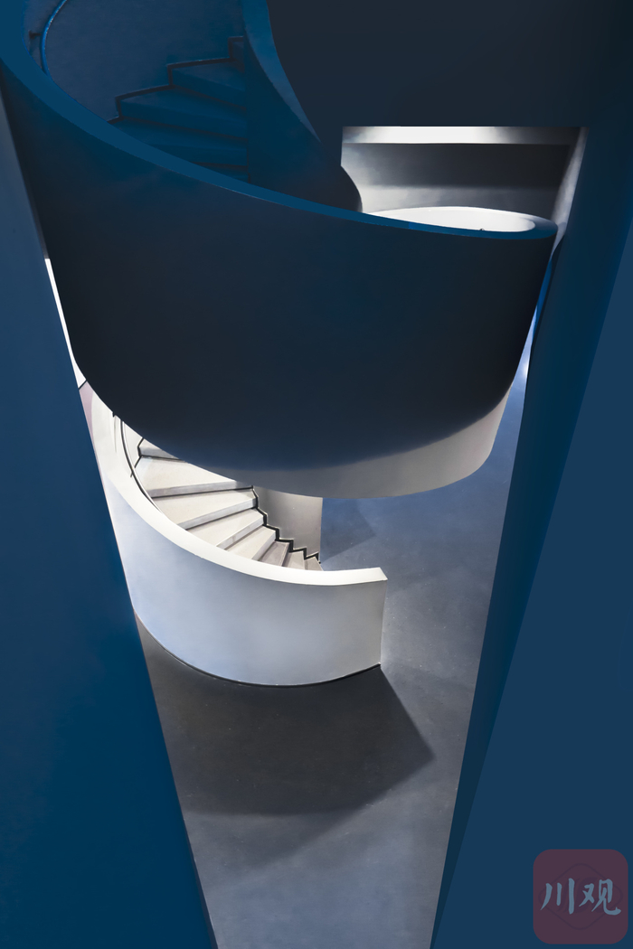 拍摄于成都天府美术馆中的旋转楼梯,通过后期手法修饰色彩。
