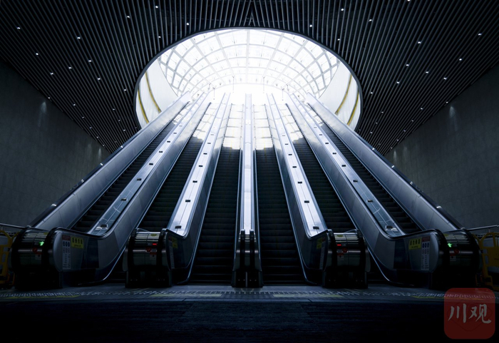 拍摄于成都的西博城地铁站,这张照片使用了对称的方法,左边其实是没有电梯的通过后期手法完成创意拍摄。
