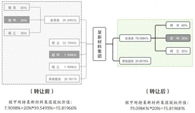 2017年9月,卢某将其持有的某新材料集团有限公司18.1818%的股权各半分别转让给原告程甲及程乙,将其持有的上海某商务咨询中心40%的财产份额各半分别转让给原告程甲及程乙,并办理了相应的变更登记,第三人程某就上述股权及财产份额转让向卢某支付转让价款3600万元。