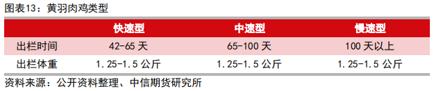 黄羽肉鸡是中国本土鸡种,发育较为缓慢,相对白羽肉鸡生长周期更长,体重更轻,抗病能力更强,味道更好。对于不同类型的黄羽肉鸡,生长周期具有明显的差异,市场上主要有快速型、中速型和慢速型三种类型的黄羽肉鸡。