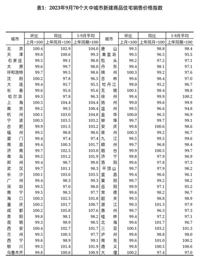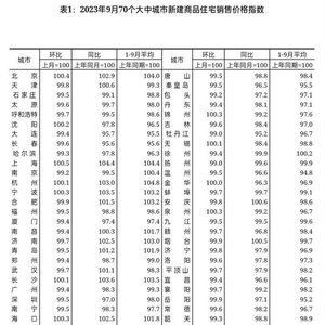 国家统计局发布9月份房价指数,一线城市商品住宅销售价格环比稳中微涨