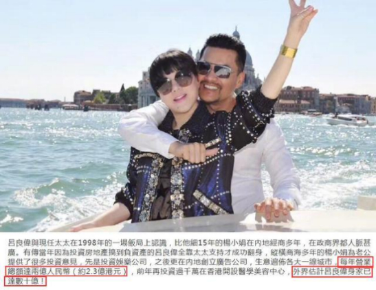 两人结婚后,吕良伟放弃做生意,投资理财的事儿全交给精明的杨小娟打理。港媒曾报道称:
