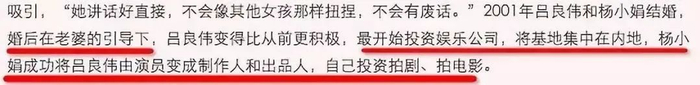 但难得的是,杨小娟不仅自己是商界女强人,还能助力吕良伟转型从商、“软饭硬吃”,让他在商界闯出了一番作为。
