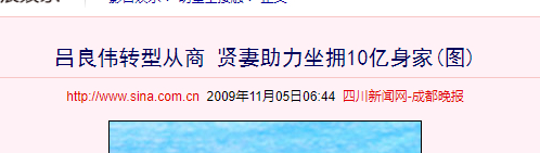 此外,据网上爆料,吕良伟和杨小娟夫妇还有多项投资———腾龙娱乐有限公司、元绿寿司、修身堂北京纤体美容中心、阿迪达斯休闲系列中国区总代理、卫星传媒等。
