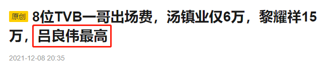 早在2021年,网上就曾爆料过顶流港星的商演价格,当时在8位TVB一哥中,吕良伟的出场费就是最高的,高达30万。