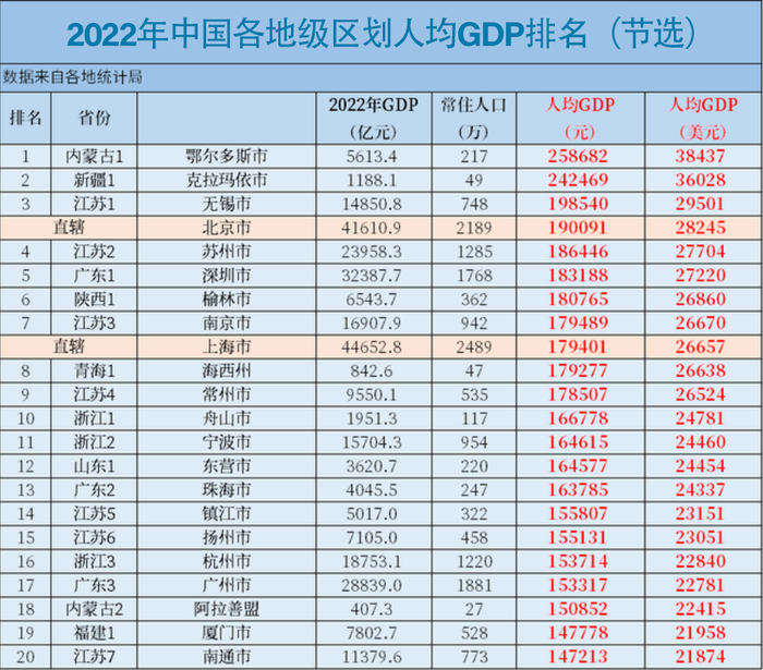 人均GDP排名