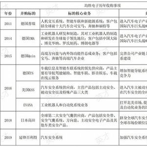 2011年6月27日,均胜电子母公司均胜集团以1.79亿欧元收购了普瑞76.18%的股权,并且与普瑞控股签订期权购买协议。母公司均胜集团以支付现金的方式取得普瑞公司5.10%的股权与普瑞控股74.90%的股权(普瑞控股直接持有德国普瑞94.90%的股权),由此正式进入汽车电子产业。据了解,德国普瑞的主要业务包括空调控制系统、驾驶控制系统、传感器系统、电子驻车系统、电源管理系统等;主要客户包括全球前十大汽车公司宝马、奔驰和福特等,由此公司的客户也得到了拓展。