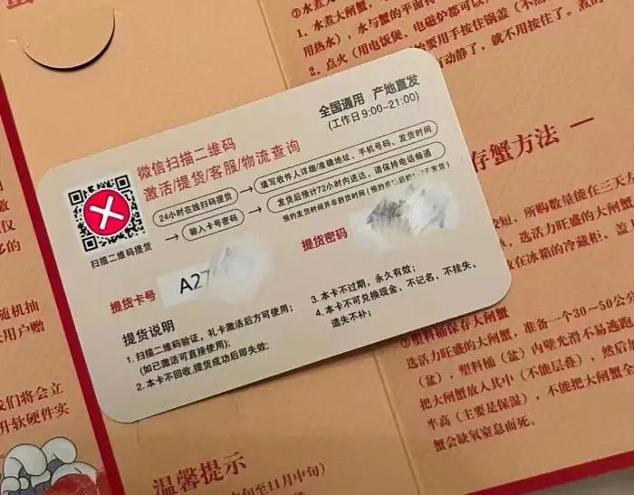 由于有多次用蟹卡提货的经验,看到卡的那一刻,潇潇就感觉有些不对,“提货密码怎么会直接露出来?”
