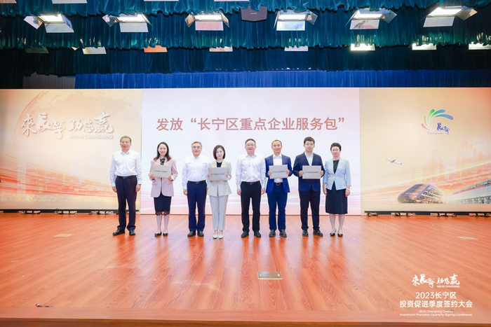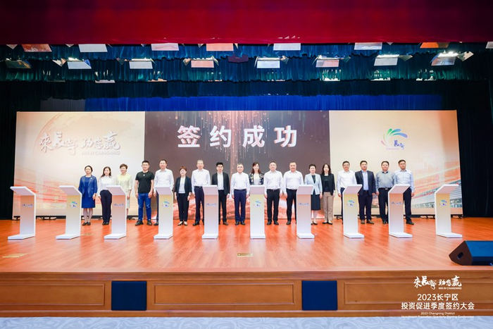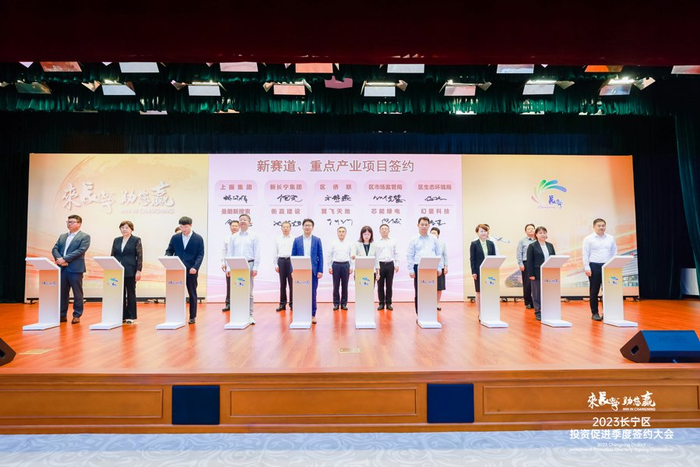 10月19日上午,长宁区召开2023年长宁区投资促进季度签约大会,政务服务“帮宁办”工作室正式揭牌,启动“访千企”活动,发放重点企业“服务包”,27个优质项目现场集中签约落地,投资额近33亿元。