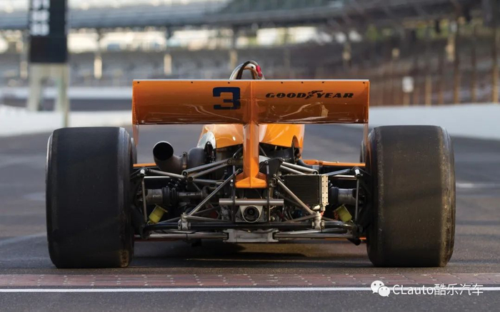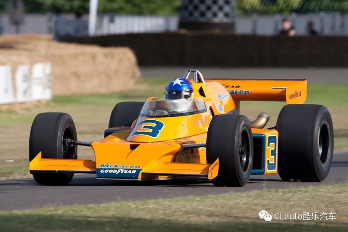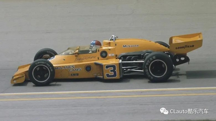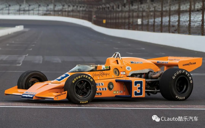 这是一台由约翰尼·拉瑟福德在1974年的印第安纳波利斯500比赛中驾驶并拿到胜利的迈凯伦M16C,其从第25位出发,在比赛的前三圈就超过了其他车辆,首轮超过12个车位,最终将领先扩大到22秒。