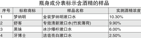 此外,本次试验还在2款成分表和销售页面均宣称“无酒精”的样品中检出微量酒精,浓度低于1%。企业表示可能是生产线消毒后的酒精残留,在加工过程中与漱口水发生混合导致。