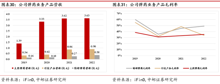 公司从事业务主要与导弹和弹药相关,导弹和弹药作为现代战争的两大耗材,未来有望保持较快增长。在导弹业务方面,公司在固体发动机领域首创的多项核心技术处于行业领先地位,直列式安全点火系统具备更高的安全性和可靠性,前景广阔,未来将受益于导弹放量,另外,随着公司技术水平不断提升,市占率也有望进一步提升;在弹药业务方面,公司已发展成为以小口径防空反导弹药为特色,多类型中、小口径弹药同步发展的新型弹药企业,新型空袭威胁下,高炮成为高效拦截手段,有望保持较快发展。