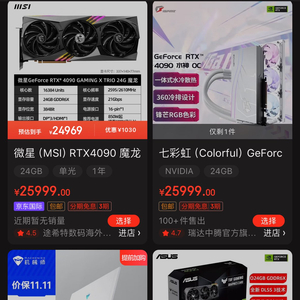 截至10月19日,时代财经发现各大电商平台、英伟达旗舰店,以及华硕、七彩虹等英伟达合作商均已将RTX 4090系列显卡下架。只有部分第三方卖家还在销售,标价普遍在2.5万元到3万元左右,相比该款显卡日常1.4万元的售价已然翻倍。