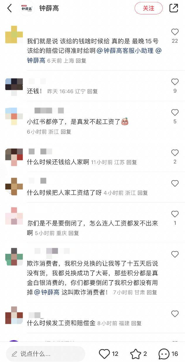 在其小红书官方账号下,也出现了“还钱”“要赔偿金”的留言。还有消费者反映:“积分不给兑换,客服声称没有货。”