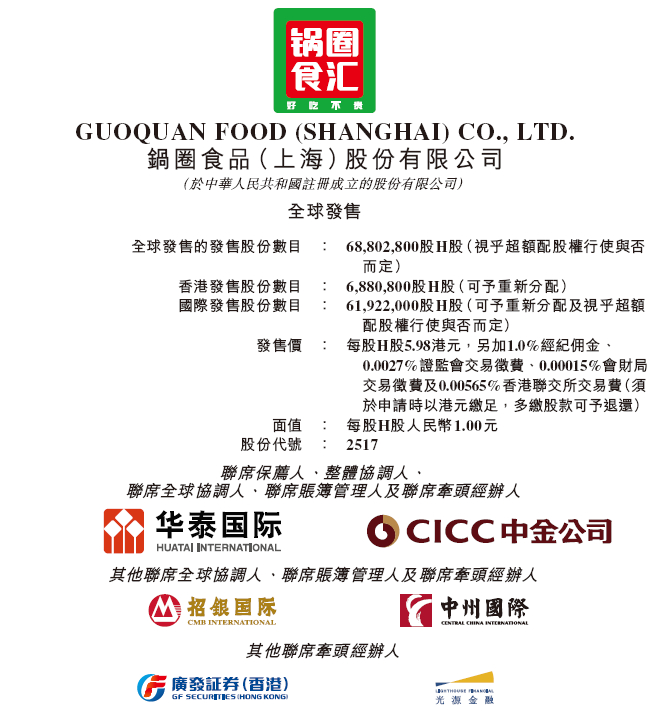 锅圈是次IPO,华泰国际、中金公司为其联席保荐人,其他包销商包括招银国际、中州国际、广发证券香港、光源金融、富途证券、老虎证券、利弗莫尔证券、元库证券、胜利证券。