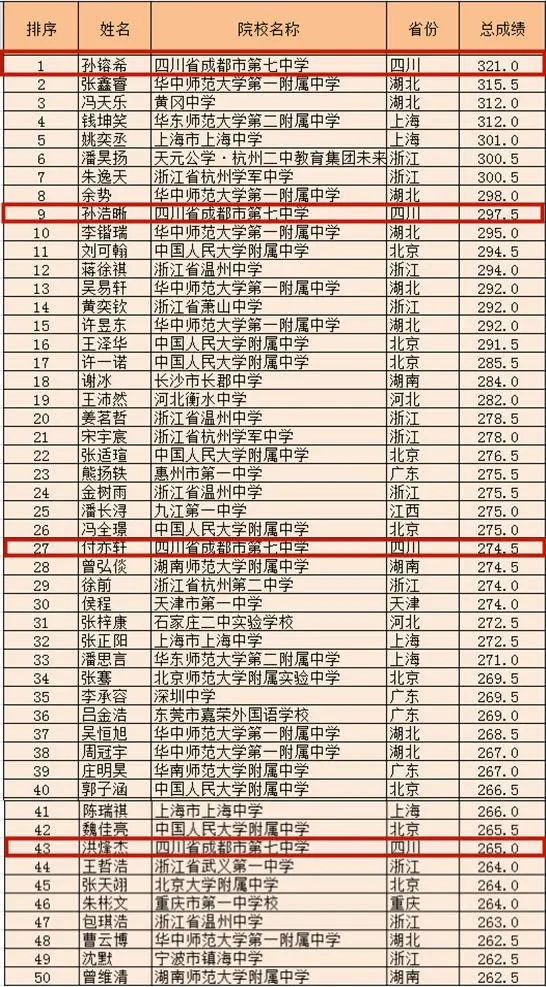 成都七中学生不仅拿下总分第一还包揽四个单项奖