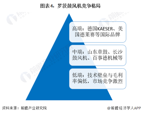 目前罗茨鼓风机行业竞争较为充分,市场化程度较高,已经形成了高、中、低三个层次产品市场。低端产品市场技术壁垒与毛利率偏低,市场竞争激烈,国内大多数罗茨鼓风机生产厂商主要从事L系列罗茨鼓风机等低端产品的生产。中端产品指使用国外20世纪90年代技术或在该类技术的基础上进行技改生产制造的罗茨鼓风机,该市场需求量大,对产品质量要求较高,代表企业有山东章鼓、长沙鼓风机、百事德机械等。高端市场主要指智能化、特殊用途等非标准化罗茨鼓风机,还包括高速小型等部分代表国际技术发展趋势的产品。高端罗茨鼓风机制造工艺复杂,需要将电气工程、电气控制与风机制造技术结合,具有较高的技术门槛,未来发展潜力巨大。