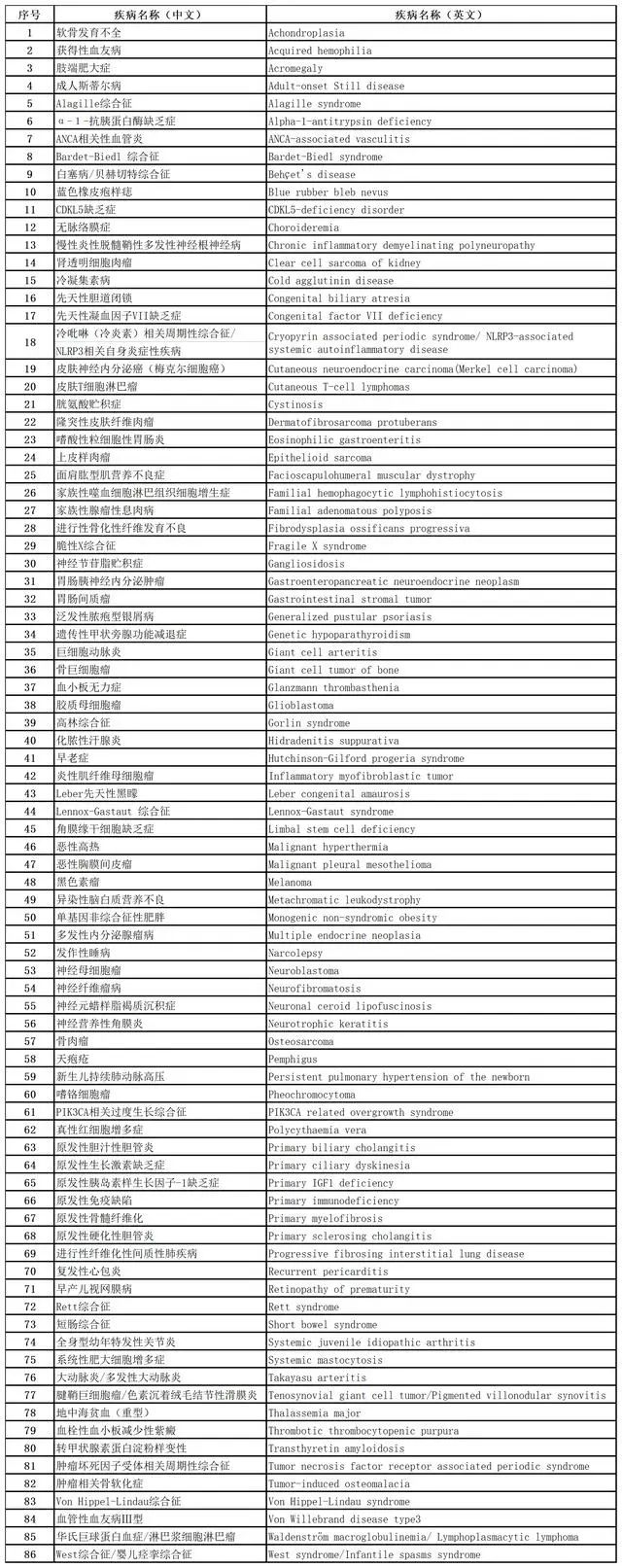 以下为第二批罕见病目录: