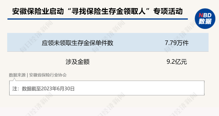 今年9月,安徽保险业启动“寻找保险生存金领取人”专项活动。据统计,截至6月30日,安徽省人身险公司应领未领取生存金保单件数7.79万件,涉及金额9.2亿元。