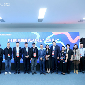 科幻影视投融资及科幻产业发展论坛参与嘉宾合影。 图片来源:主办方供图