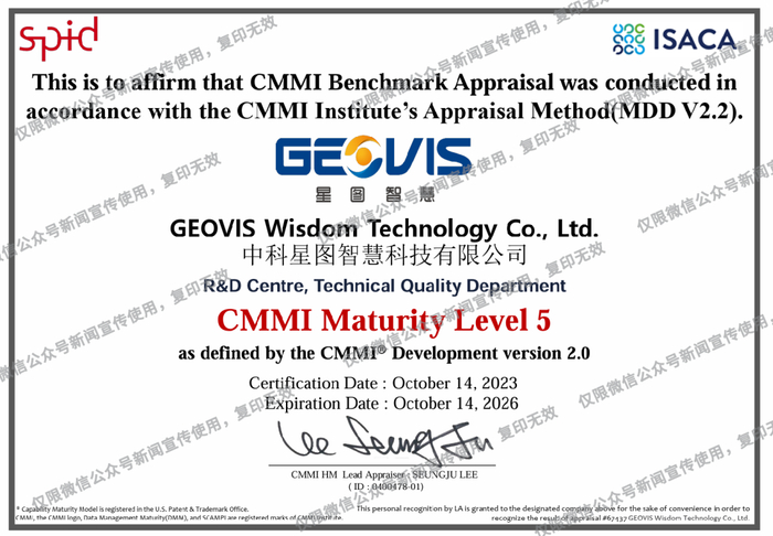 10月20日,中科星图智慧有限公司(以下简称“星图智慧”)收到CMMI DEV V2.0五级证书。此次认证的顺利通过标志着星图智慧正式通过全球软件领域最高级别认证,意味着星图智慧的研发能力再次获得国际权威认证。