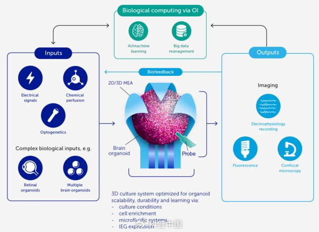 而类器官智能就是将体外培养的大脑器官组织作为生物硬件,通过与外部的电子设备相连来实现生物计算,我们人工构建的大脑,就是整台计算机的CPU+GPU,想想是不是很科幻呢?