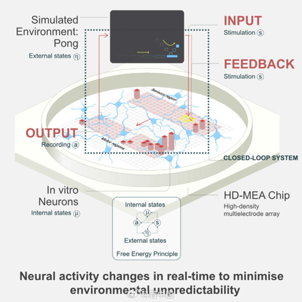 再往前推也有脑洞大开的研究。例如去年12月,澳大利亚生物科技初创公司Cortical Labs就用人类脑细胞培育的“碟中大脑”(Dish Brain)学会了打乒乓球。