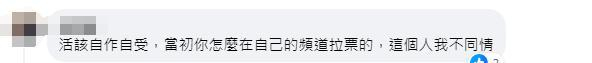 “自作自受,当初你怎么在自己的频道拉票的,这个人我不同情。” ↓